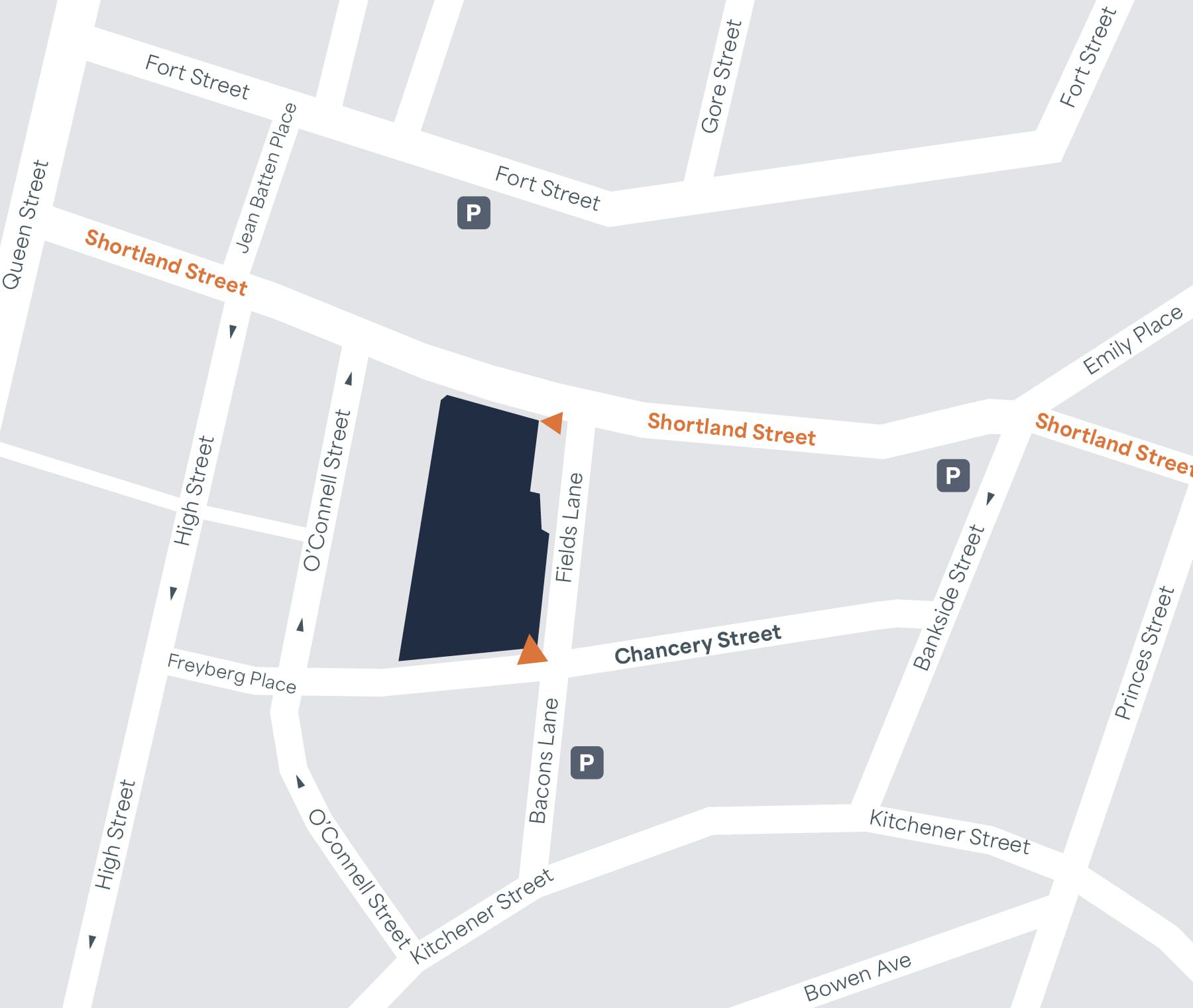 Morgan Coakle client car parking is located at the rear of 41 Shortland Street on Chancery Street.